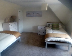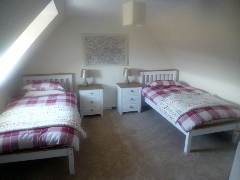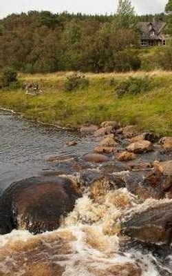 The Lodge, which can accommodate up to 14 people in 5 Twin, 2 Double and 1 single rooms, is spacious inside and splendidly furnished in a traditional highland style as fits in its location on a forested hillside looking towards the river.